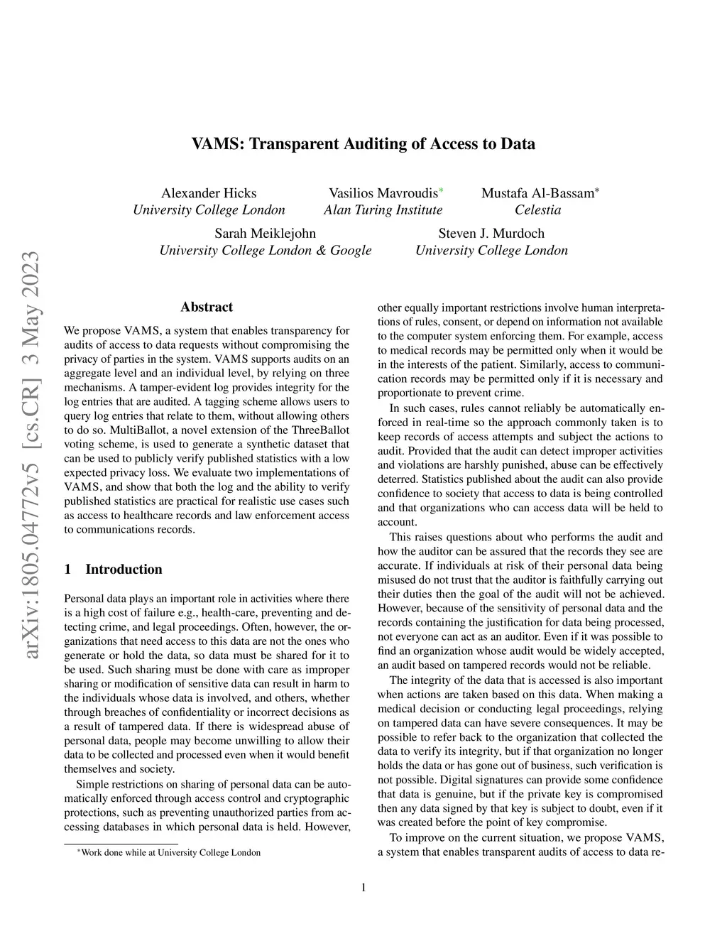 VAMS: Verifiable Auditing of Access to Confidential Data