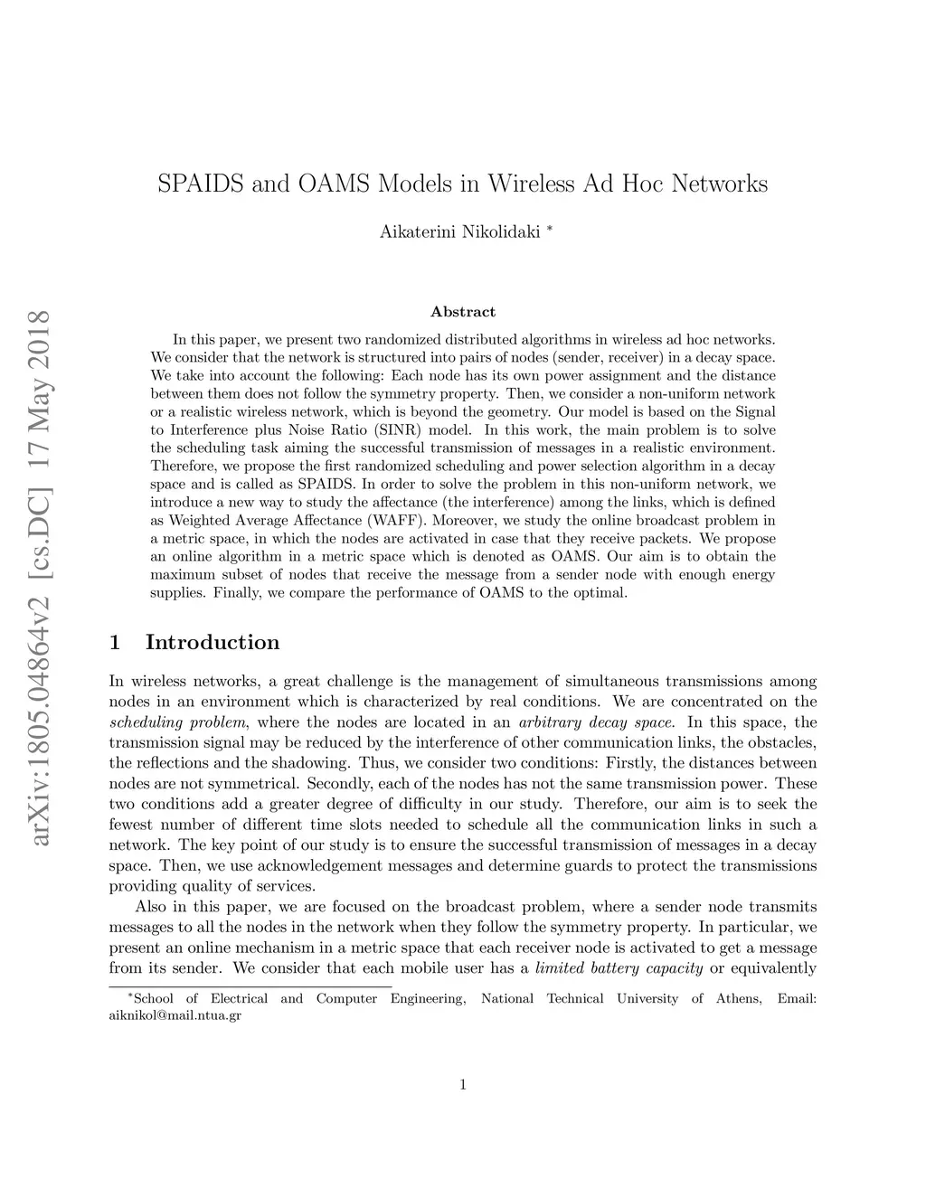 SPAIDS and OAMS Models in Wireless Ad Hoc Networks