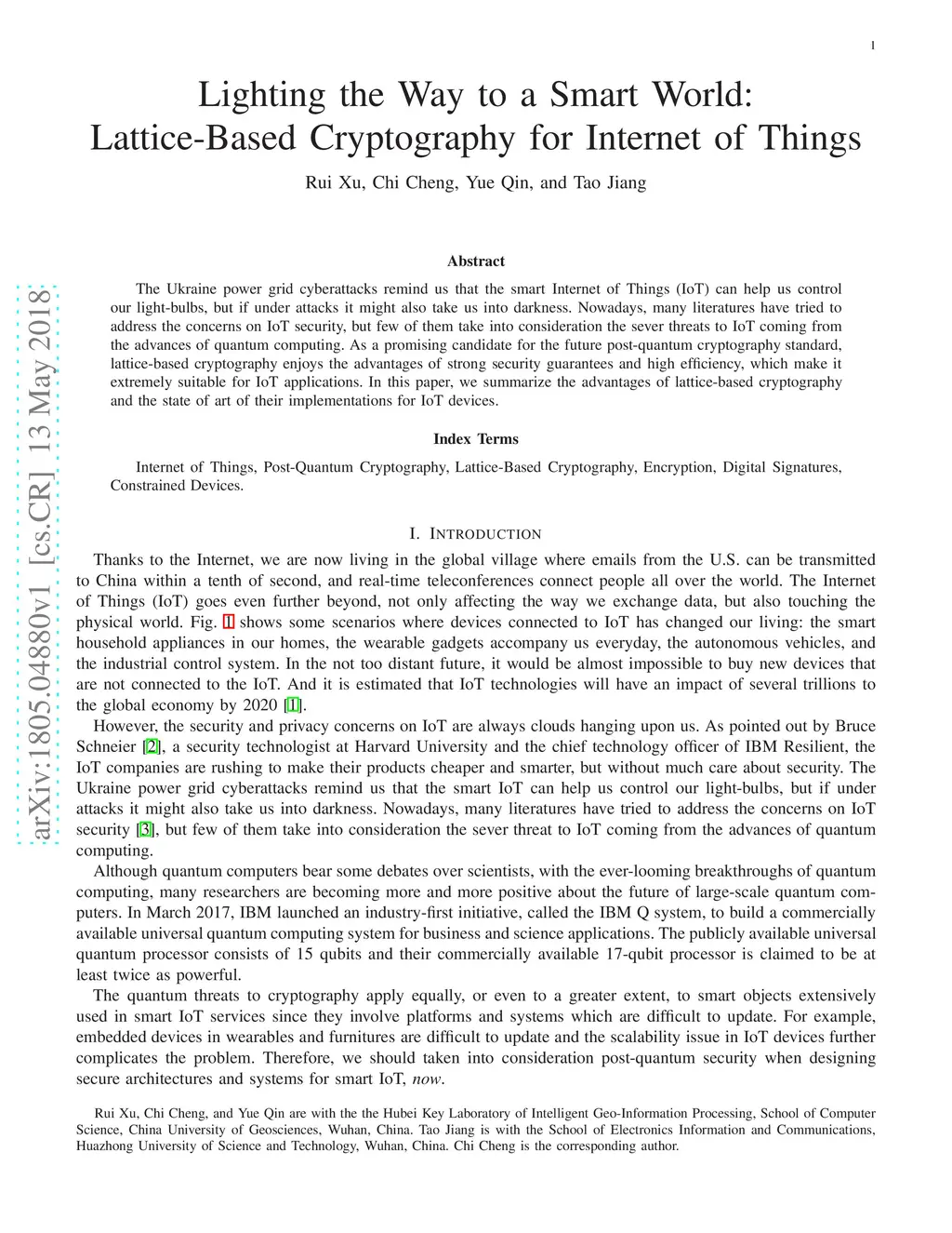 Lighting the Way to a Smart World: Lattice-Based Cryptography for