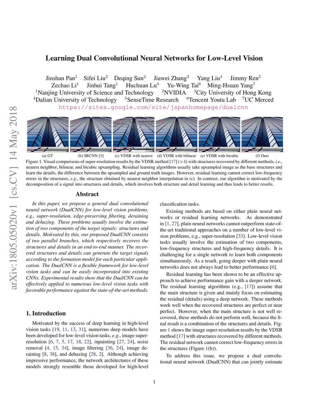 Learning Dual Convolutional Neural Networks for Low-Level Vision