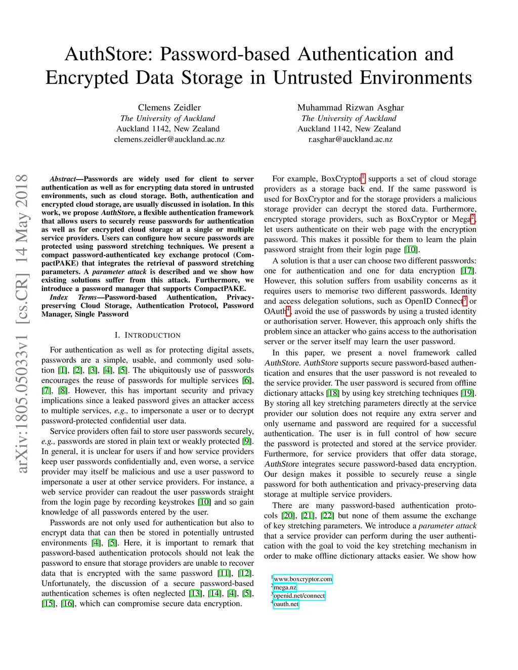 AuthStore: Password-based Authentication and Encrypted Data Storage in