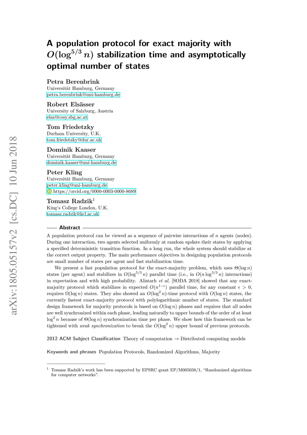 A population protocol for exact majority with