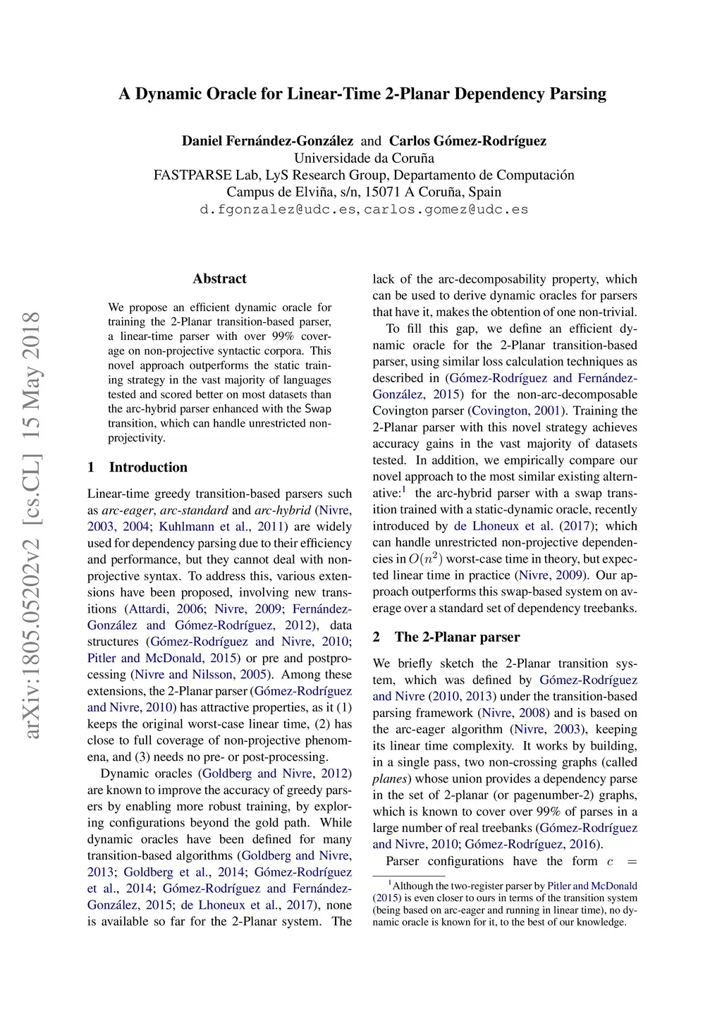 A Dynamic Oracle for Linear-Time 2-Planar Dependency Parsing