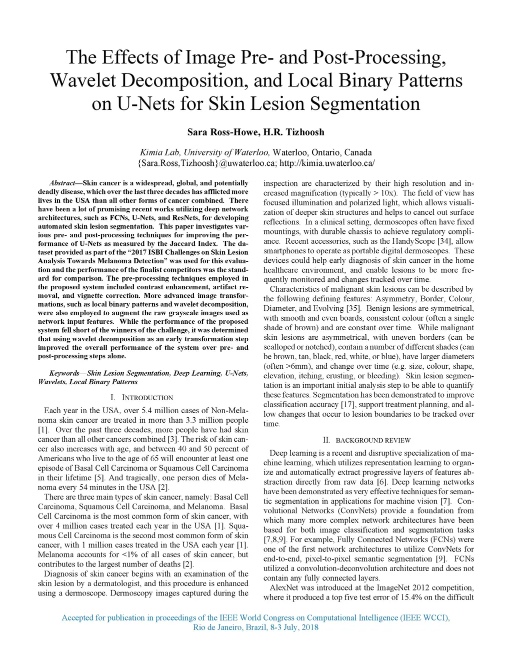 Skin cancer is a widespread, global, and potentially deadly disease, which over the last three decades has afflicted more lives in the USA than all other forms of cancer combined. There have been a lot of promising recent works utilizing deep network architectures, such as FCNs, U-Nets, and ResNets, for developing automated skin lesion segmentation. This paper investigates various pre- and post-processing techniques for improving the performance of U-Nets as measured by the Jaccard Index. The dataset provided as part of the "2017 ISBI Challenges on Skin Lesion Analysis Towards Melanoma Detection" was used for this evaluation and the performance of the finalist competitors was the standard for comparison. The pre-processing techniques employed in the proposed system included contrast enhancement, artifact removal, and vignette correction. More advanced image transformations, such as local binary patterns and wavelet decomposition, were also employed to augment the raw grayscale images used as network input features. While the performance of the proposed system fell short of the winners of the challenge, it was determined that using wavelet decomposition as an early transformation step improved the overall performance of the system over pre- and post-processing steps alone.