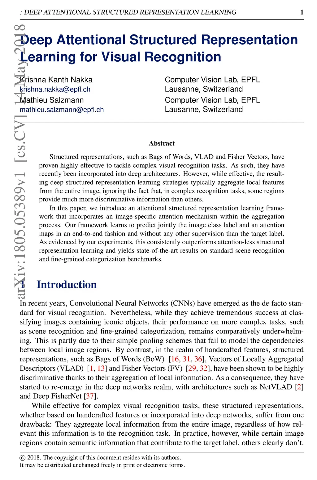Structured representations, such as Bags of Words, VLAD and Fisher Vectors, have proven highly effective to tackle complex visual recognition tasks. As such, they have recently been incorporated into deep architectures. However, while effective, the resulting deep structured representation learning strategies typically aggregate local features from the entire image, ignoring the fact that, in complex recognition tasks, some regions provide much more discriminative information than others. In this paper, we introduce an attentional structured representation learning framework that incorporates an image-specific attention mechanism within the aggregation process. Our framework learns to predict jointly the image class label and an attention map in an end-to-end fashion and without any other supervision than the target label. As evidenced by our experiments, this consistently outperforms attention-less structured representation learning and yields state-of-the-art results on standard scene recognition and fine-grained categorization benchmarks.