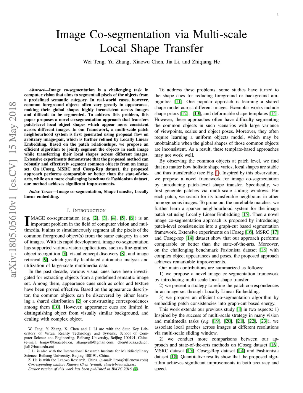Image Co-segmentation via Multi-scale Local Shape Transfer