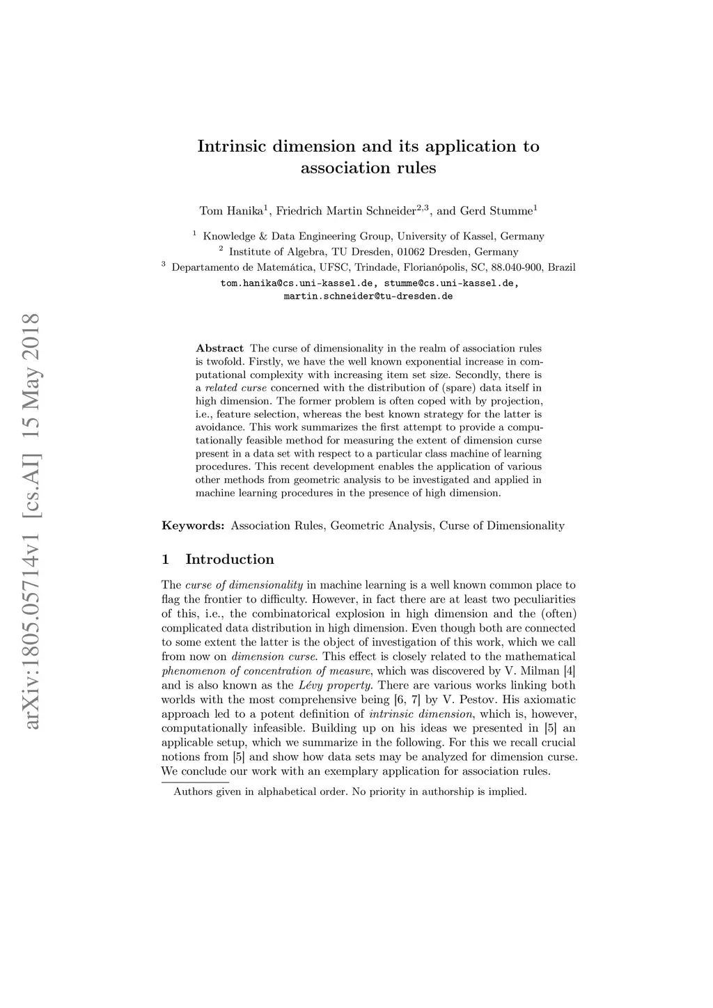 Intrinsic dimension and its application to association rules