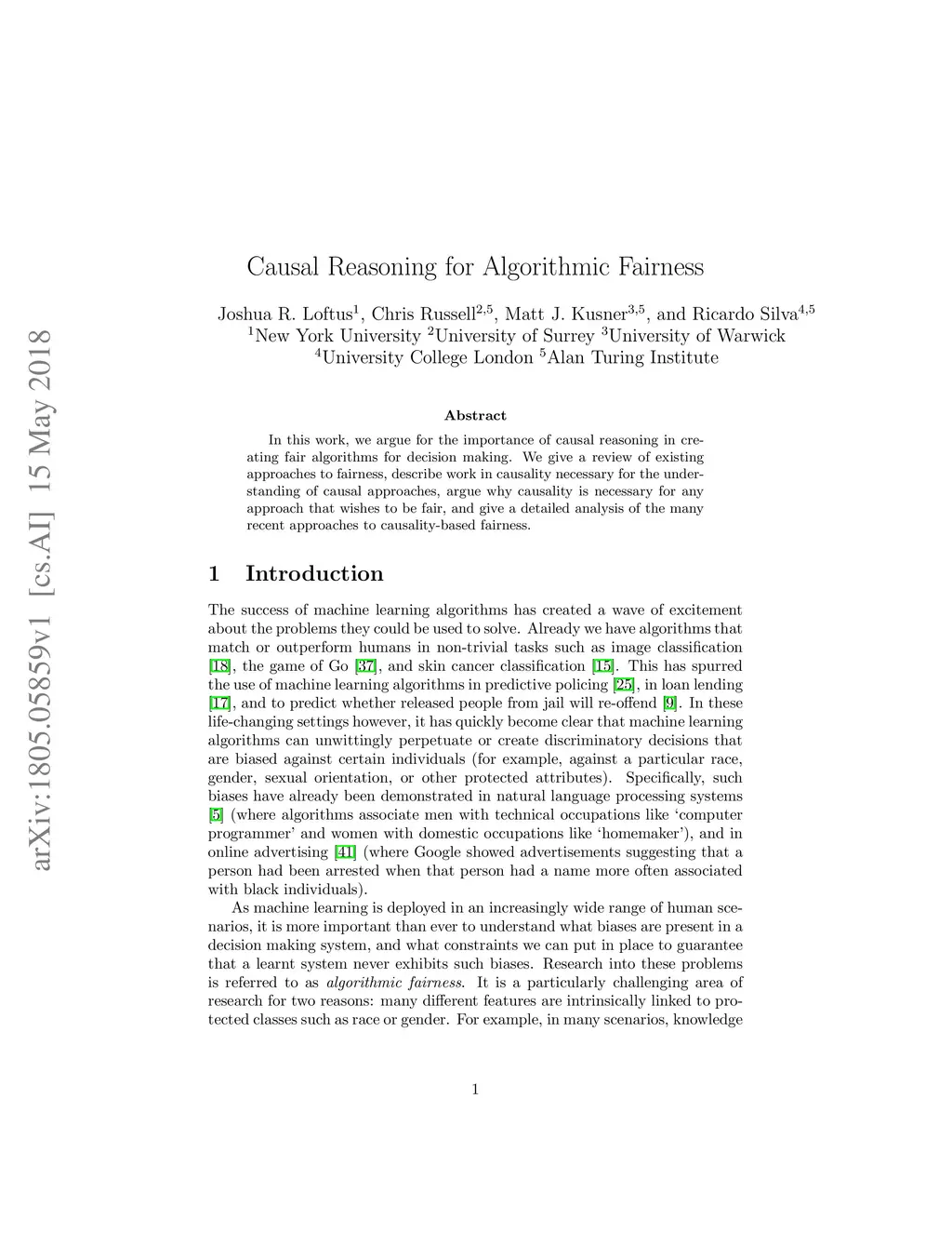In this work, we argue for the importance of causal reasoning in creating fair algorithms for decision making. We give a review of existing approaches to fairness, describe work in causality necessary for the understanding of causal approaches, argue why causality is necessary for any approach that wishes to be fair, and give a detailed analysis of the many recent approaches to causality-based fairness.