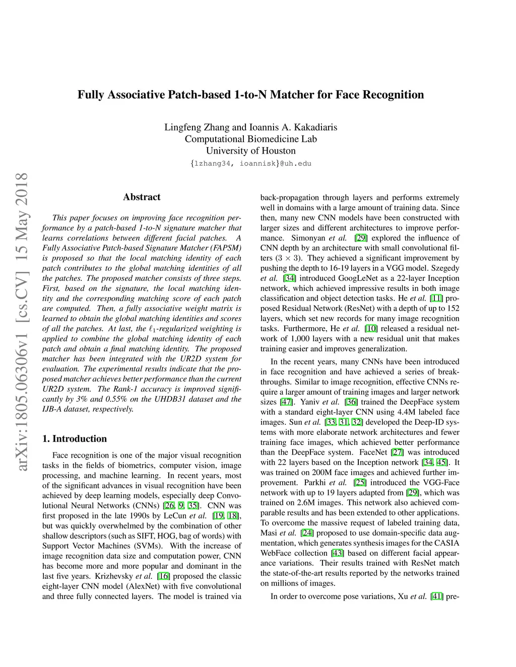Fully Associative Patch-based 1-to-N Matcher for Face Recognition