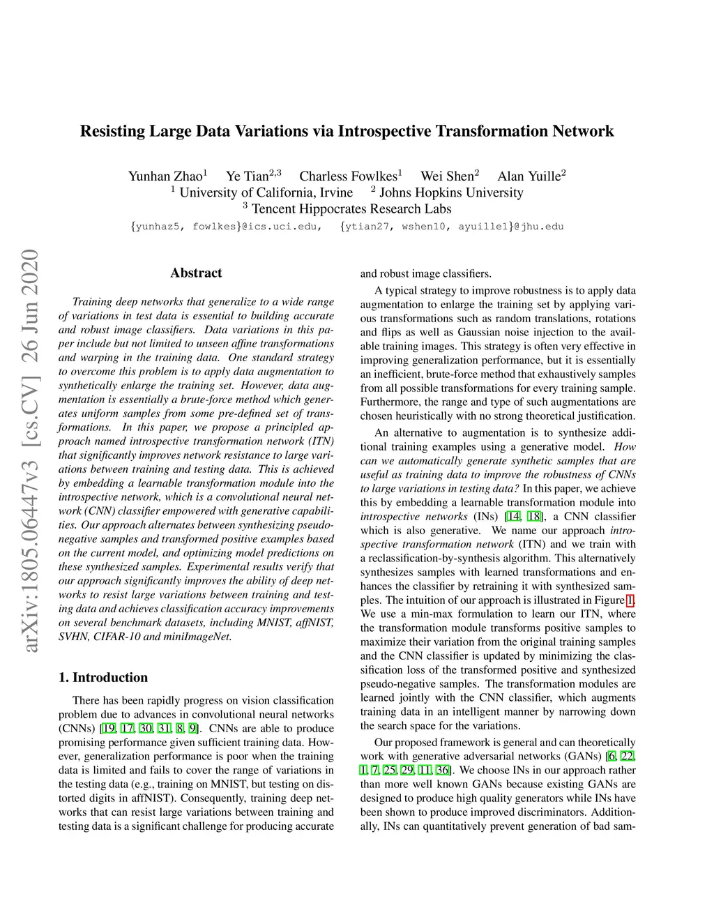 Resisting Large Data Variations via Introspective Transformation Network