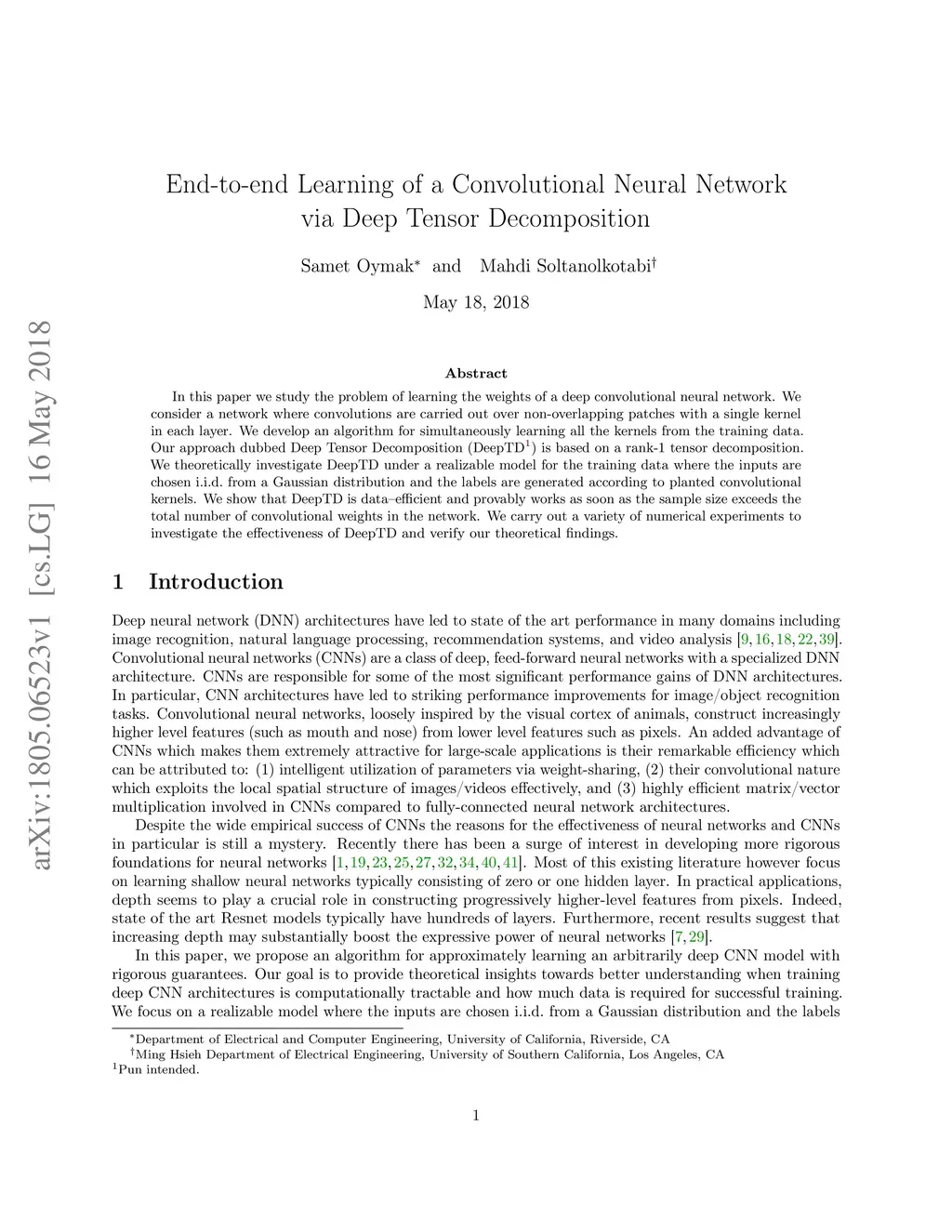 End-to-end Learning of a Convolutional Neural Network via Deep Tensor