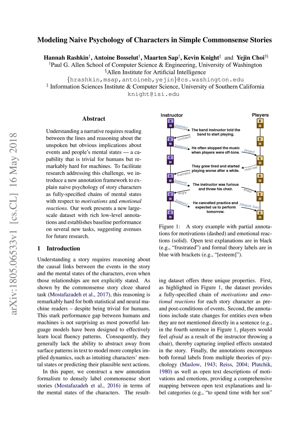 Modeling Naive Psychology of Characters in Simple Commonsense Stories