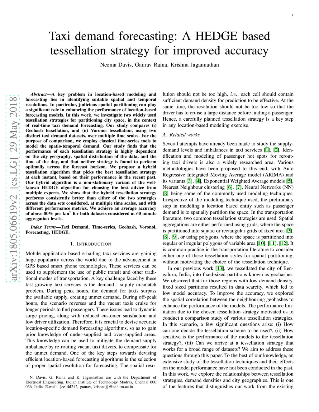 Taxi demand forecasting: A HEDGE based tessellation strategy for
