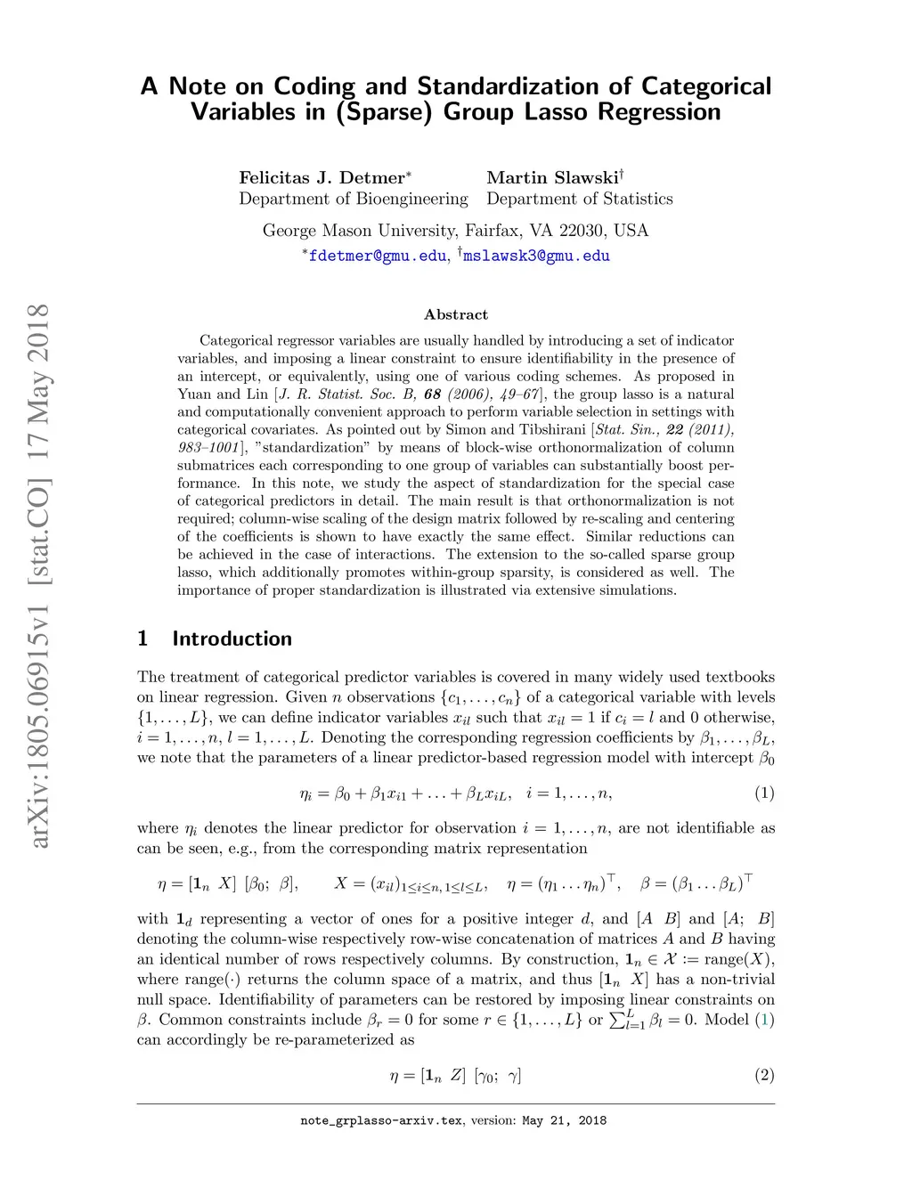 A Note on Coding and Standardization of Categorical Variables in