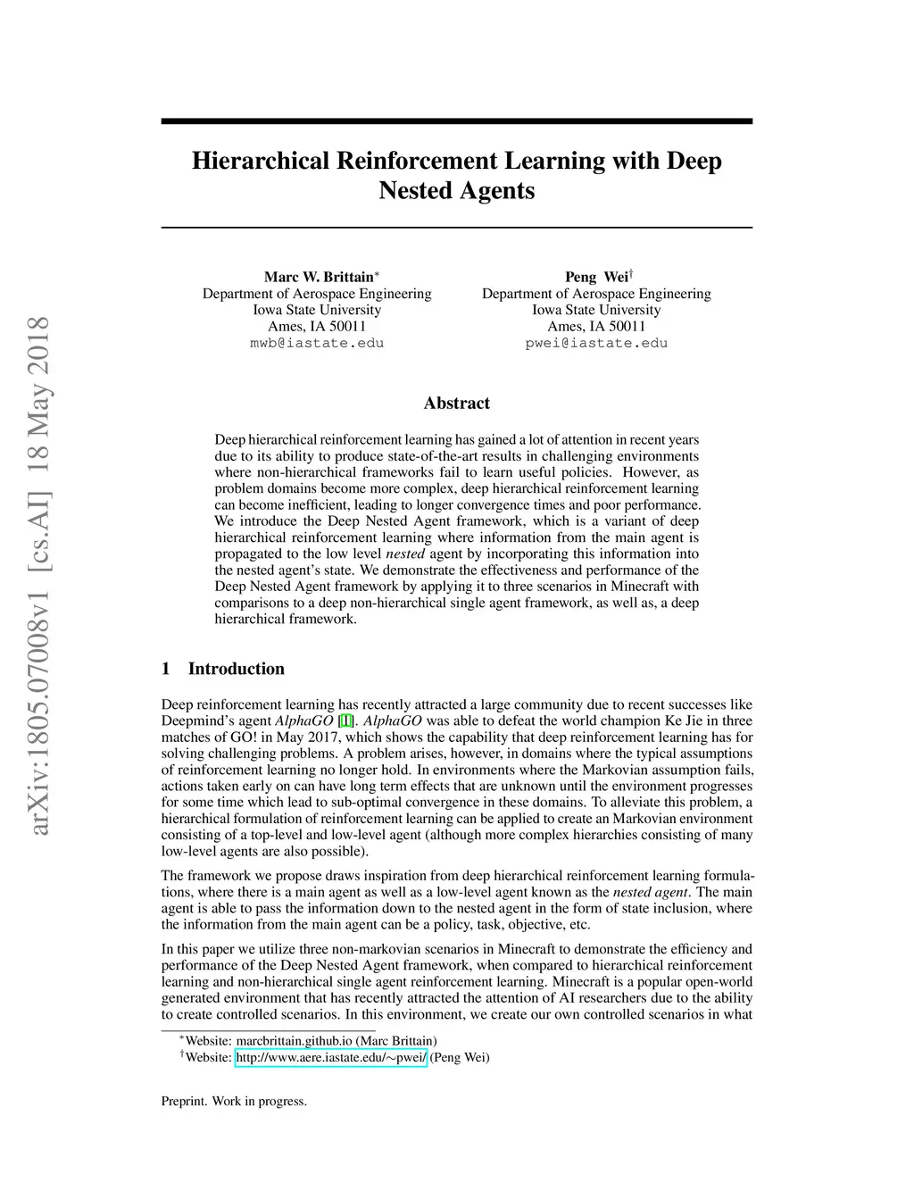 Hierarchical Reinforcement Learning with Deep Nested Agents