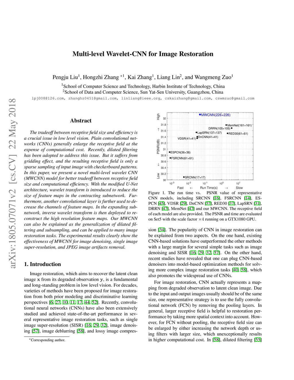 Multi-level Wavelet-CNN for Image Restoration