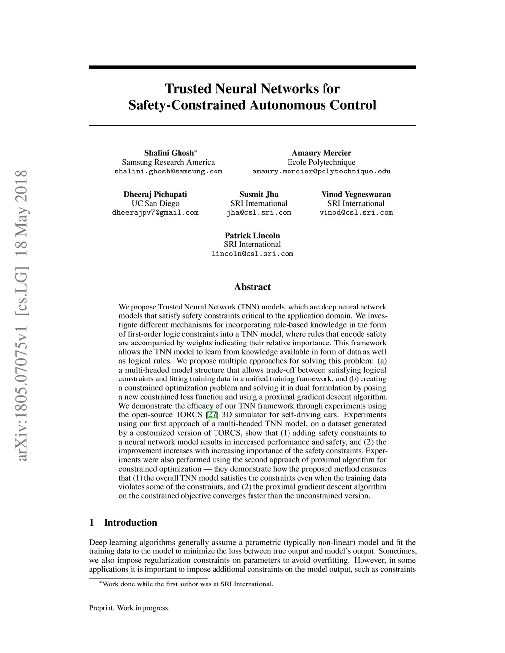 Trusted Neural Networks for Safety-Constrained Autonomous Control