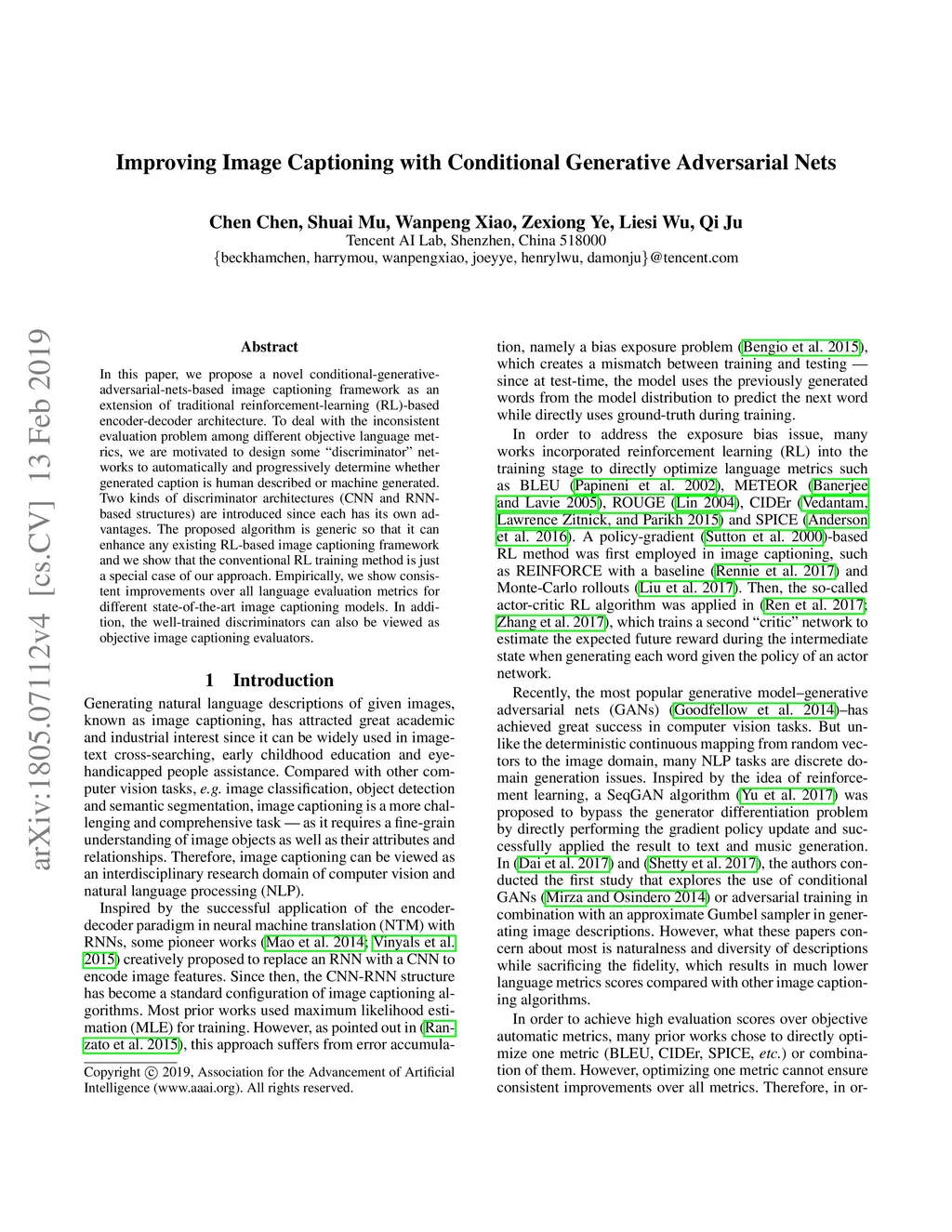 Improving Image Captioning with Conditional Generative Adversarial Nets