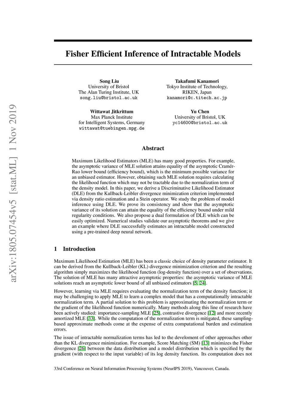 Fisher Efficient Inference of Intractable Models