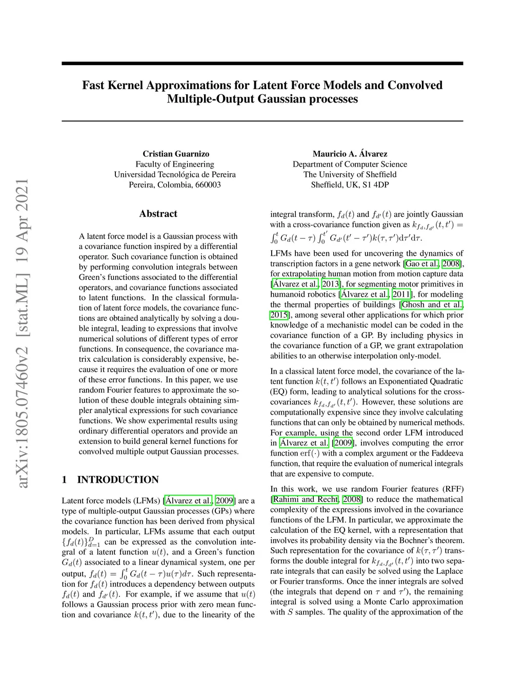 Fast Kernel Approximations for Latent Force Models and Convolved