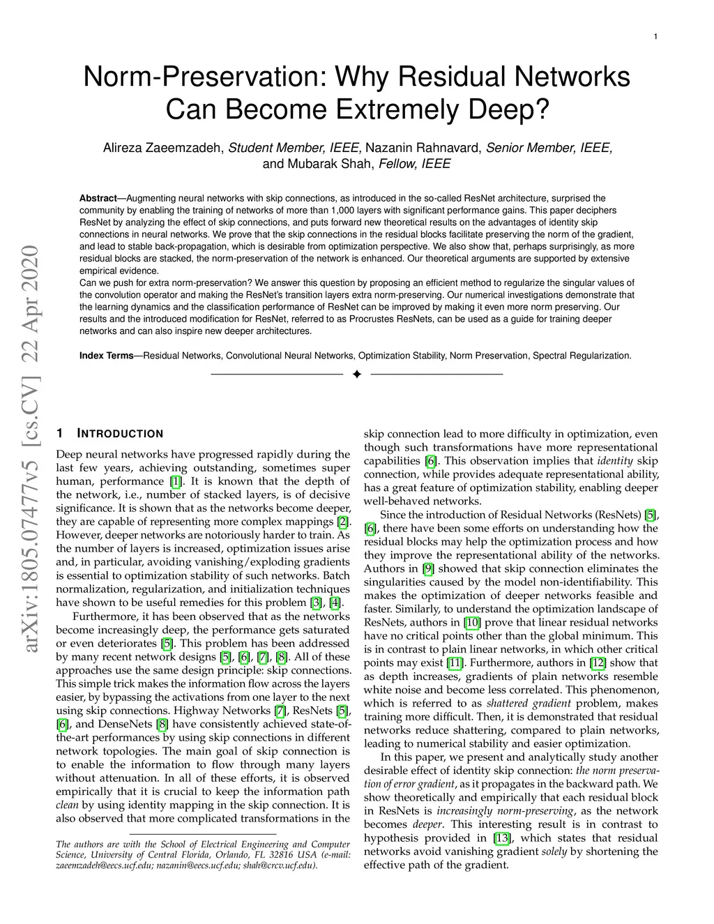 Norm-Preservation: Why Residual Networks Can Become Extremely Deep?