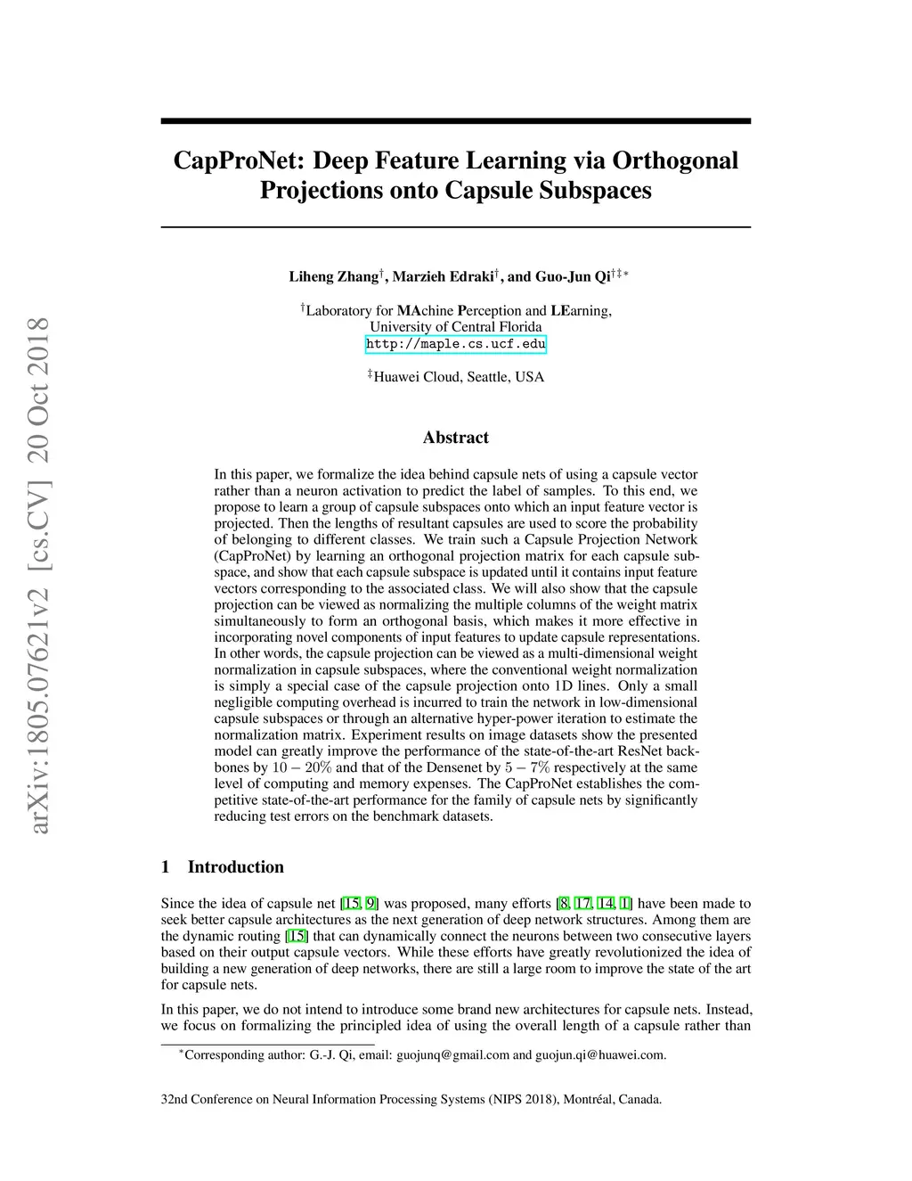 CapProNet: Deep Feature Learning via Orthogonal Projections onto Capsule