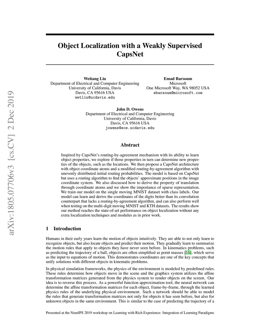 Object Localization with a Weakly Supervised CapsNet