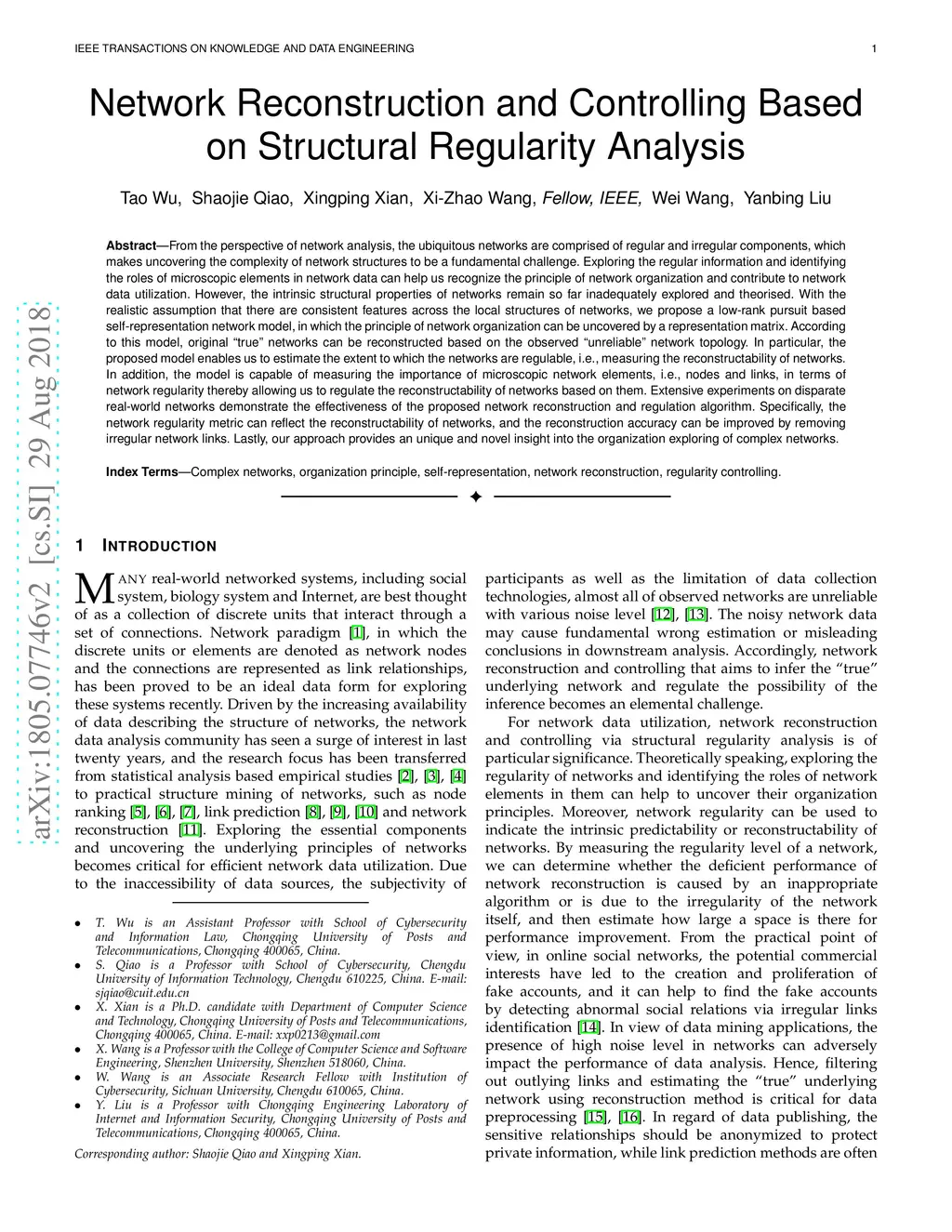 From the perspective of network analysis, the ubiquitous networks are comprised of regular and irregular components, which makes uncovering the complexity of network structures to be a fundamental challenge. Exploring the regular information and identifying the roles of microscopic elements in network data can help us recognize the principle of network organization and contribute to network data utilization. However, the intrinsic structural properties of networks remain so far inadequately explored and theorised. With the realistic assumption that there are consistent features across the local structures of networks, we propose a low-rank pursuit based self-representation network model, in which the principle of network organization can be uncovered by a representation matrix. According to this model, original true networks can be reconstructed based on the observed unreliable network topology. In particular, the proposed model enables us to estimate the extent to which the networks are regulable, i.e., measuring the reconstructability of networks. In addition, the model is capable of measuring the importance of microscopic network elements, i.e., nodes and links, in terms of network regularity thereby allowing us to regulate the reconstructability of networks based on them. Extensive experiments on disparate real-world networks demonstrate the effectiveness of the proposed network reconstruction and regulation algorithm. Specifically, the network regularity metric can reflect the reconstructability of networks, and the reconstruction accuracy can be improved by removing irregular network links. Lastly, our approach provides an unique and novel insight into the organization exploring of complex networks.