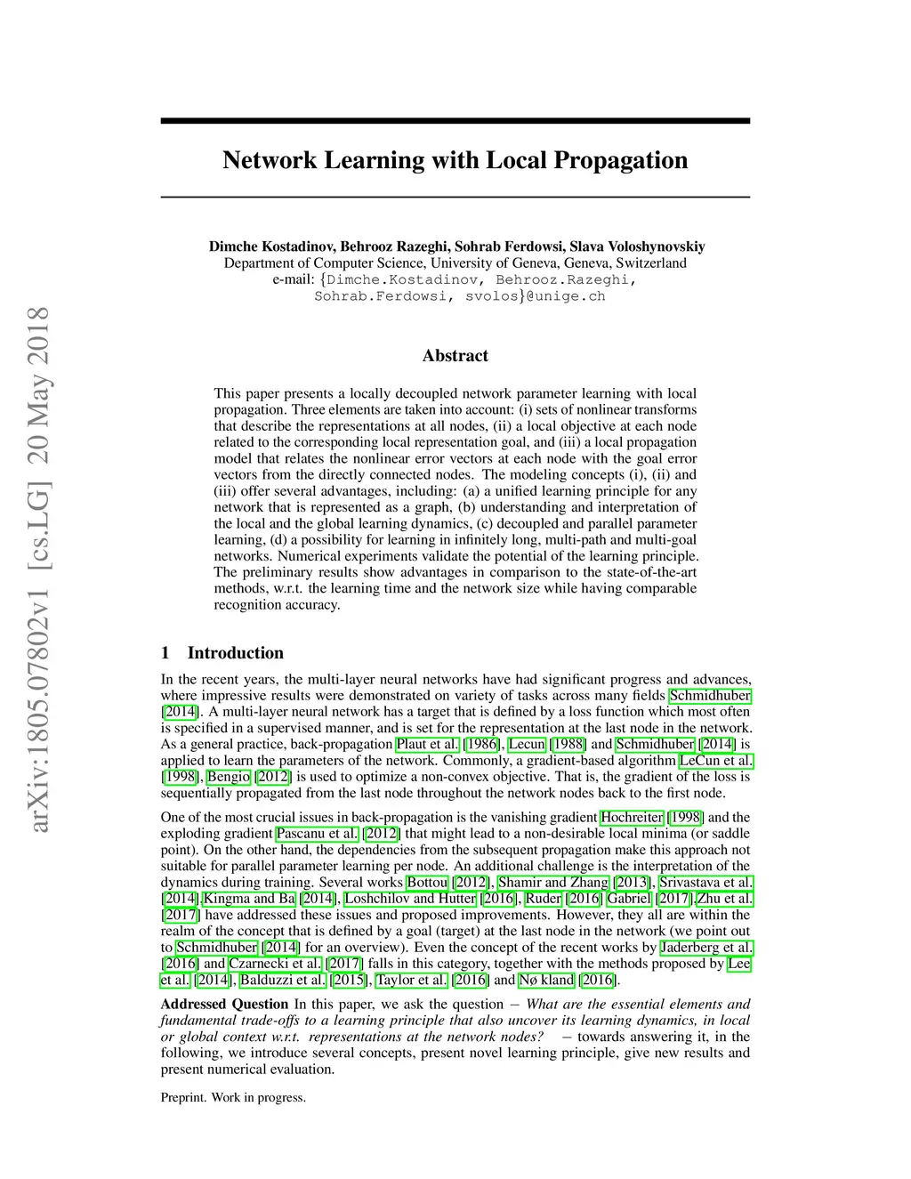 Network Learning with Local Propagation