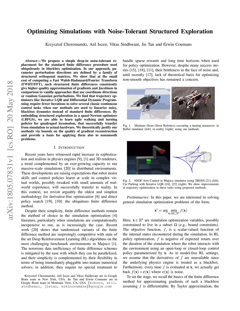 We propose a simple drop-in noise-tolerant replacement for the standard finite difference procedure used ubiquitously in blackbox optimization. In our approach, parameter perturbation directions are defined by a family of structured orthogonal matrices. We show that at the small cost of computing a Fast Walsh-Hadamard/Fourier Transform (FWHT/FFT), such structured finite differences consistently give higher quality approximation of gradients and Jacobians in comparison to vanilla approaches that use coordinate directions or random Gaussian perturbations. We find that trajectory optimizers like Iterative LQR and Differential Dynamic Programming require fewer iterations to solve several classic continuous control tasks when our methods are used to linearize noisy, blackbox dynamics instead of standard finite differences. By embedding structured exploration in a quasi-Newton optimizer (LBFGS), we are able to learn agile walking and turning policies for quadruped locomotion, that successfully transfer from simulation to actual hardware.We theoretically justify our methods via bounds on the quality of gradient reconstruction and provide a basis for applying them also to nonsmooth problems.