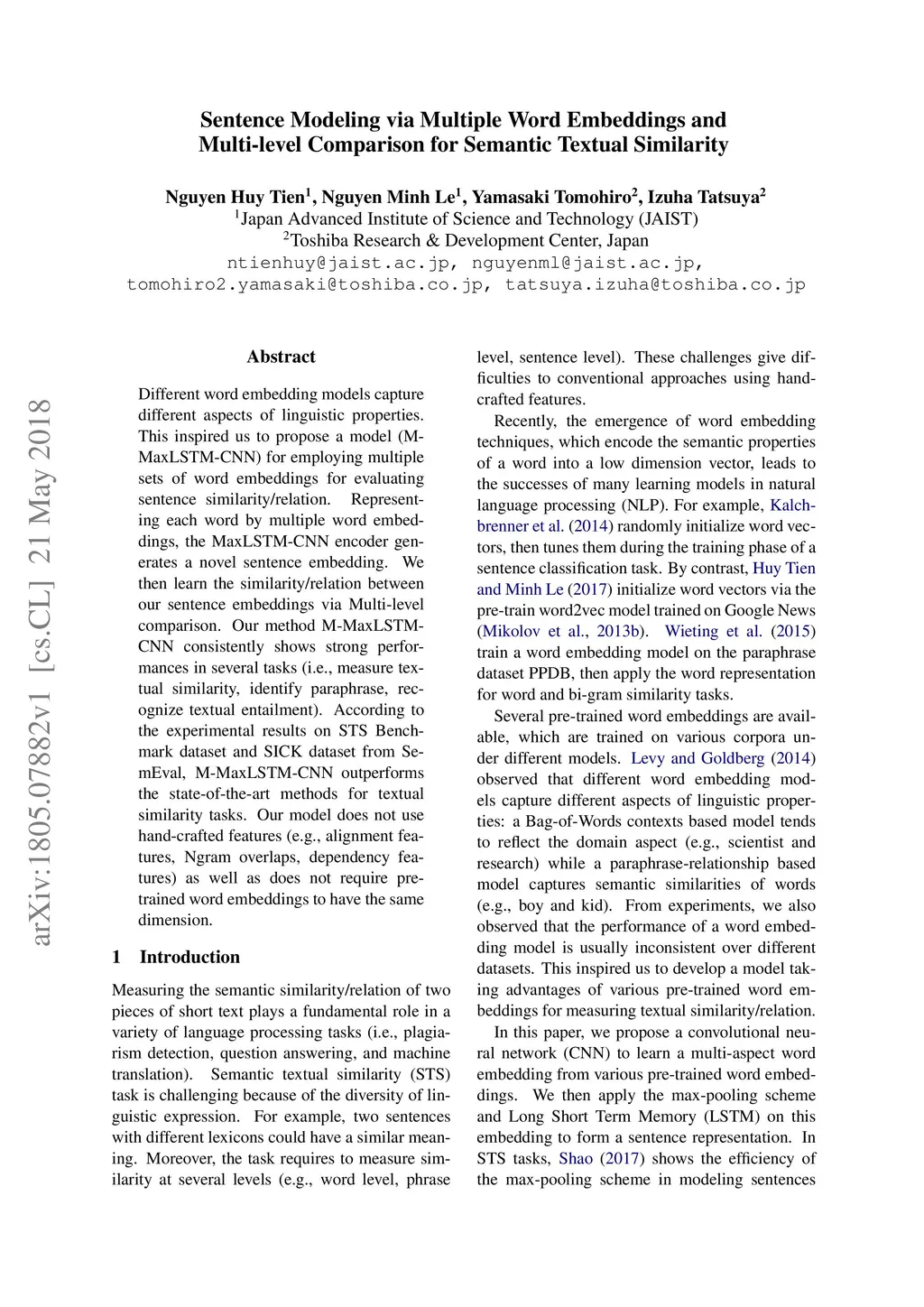 Sentence Modeling via Multiple Word Embeddings and Multi-level