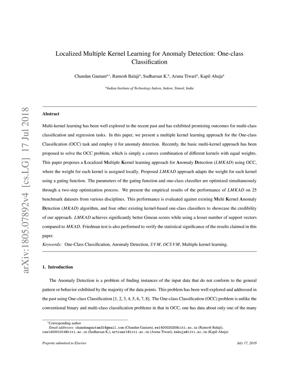Localized Multiple Kernel Learning for Anomaly Detection: One-class