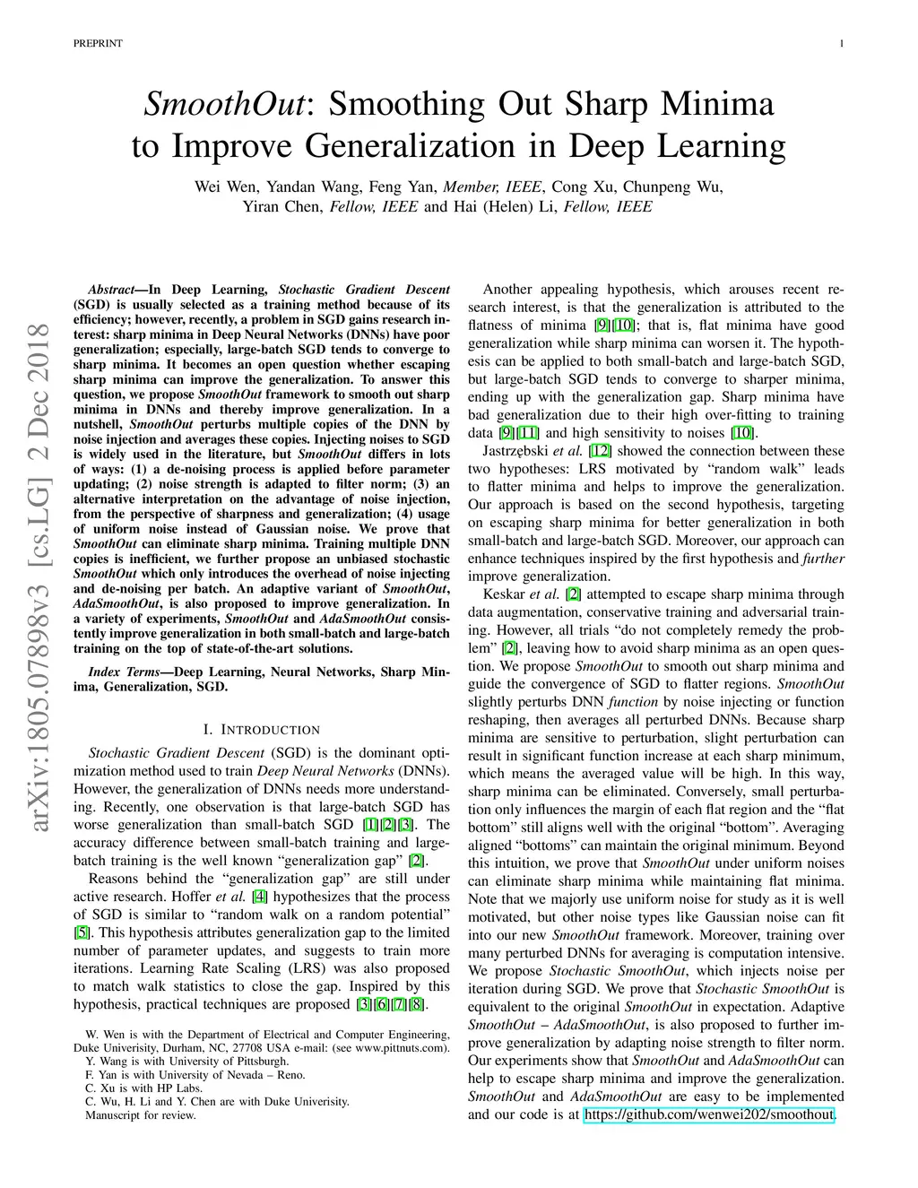 SmoothOut: Smoothing Out Sharp Minima to Improve Generalization in Deep