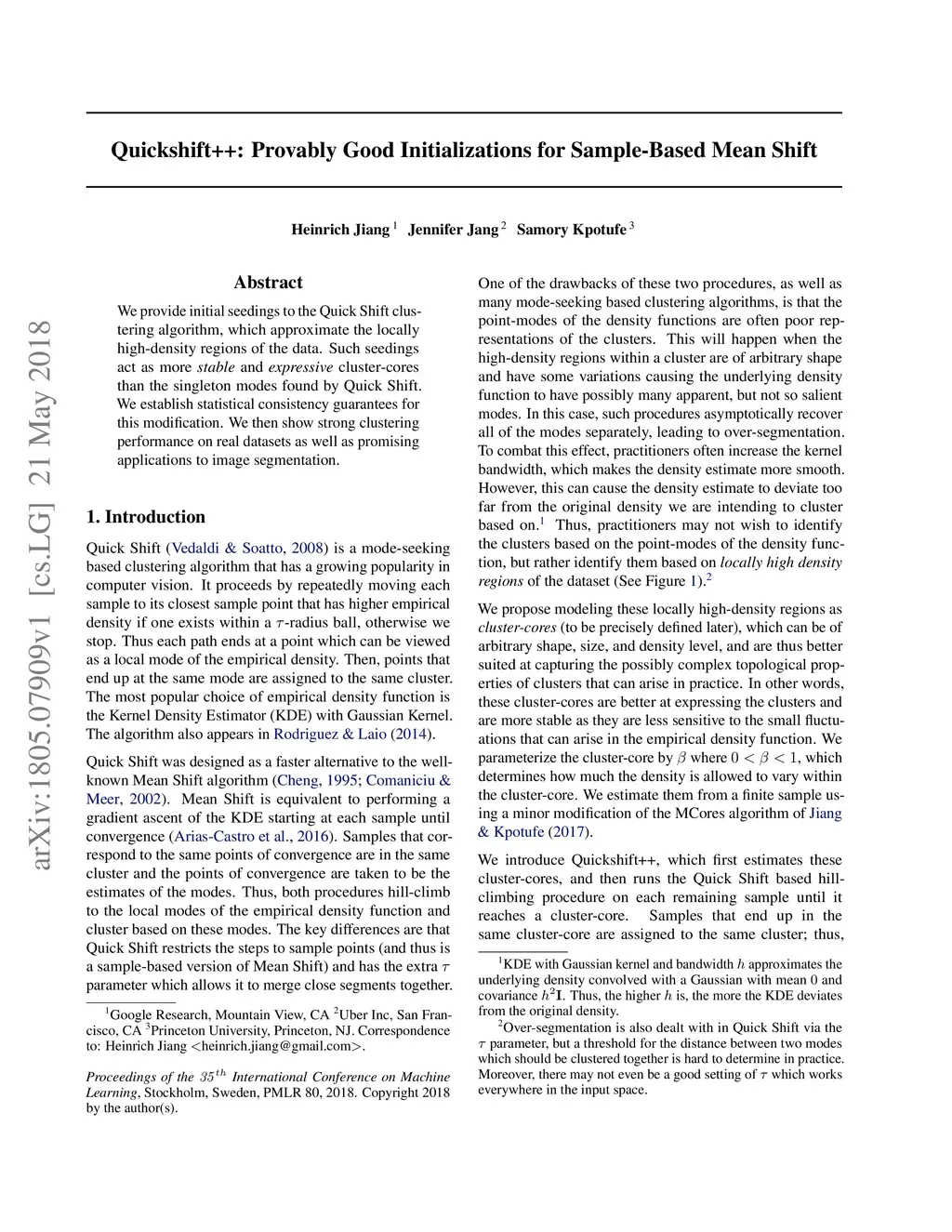 Quickshift++: Provably Good Initializations for Sample-Based Mean Shift