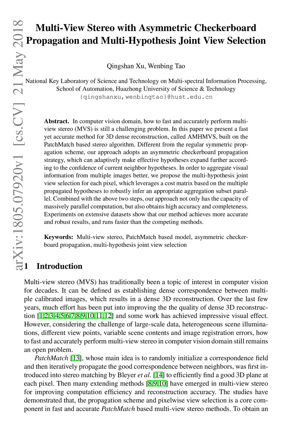 Multi-View Stereo with Asymmetric Checkerboard Propagation and