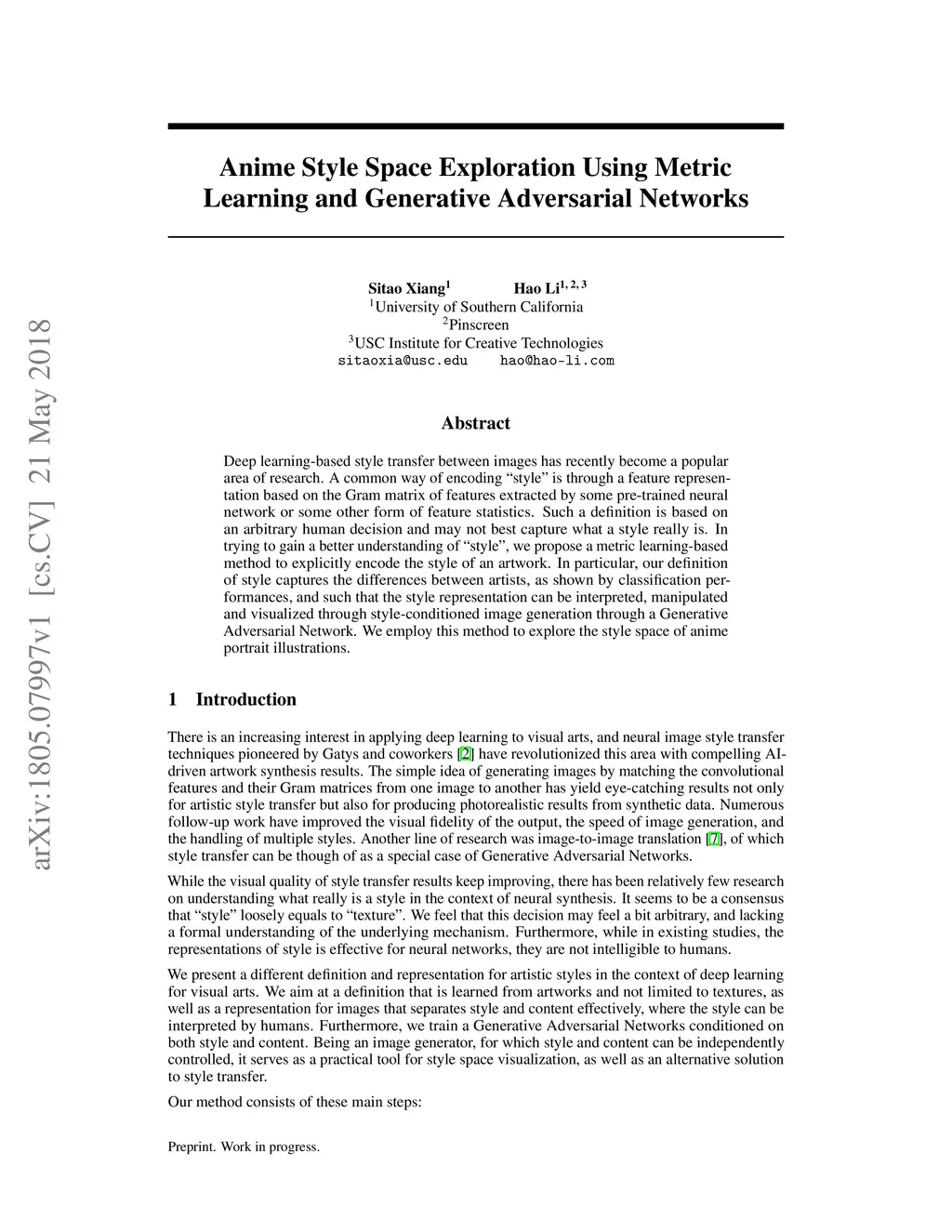 Anime Style Space Exploration Using Metric Learning and Generative