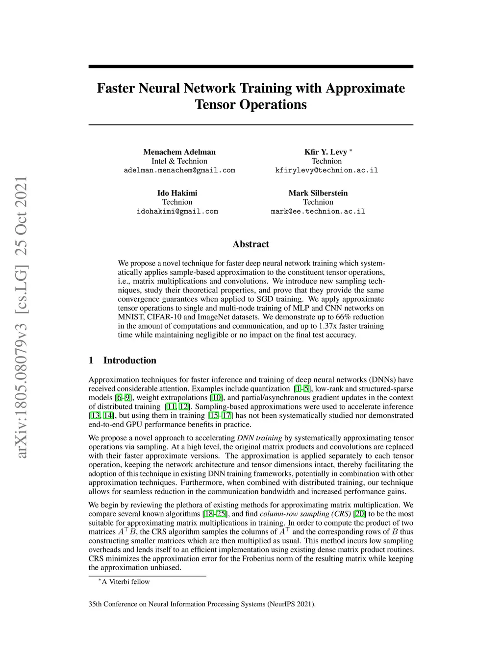 We propose a novel technique for faster deep neural network training which systematically applies sample-based approximation to the constituent tensor operations, i.e., matrix multiplications and convolutions. We introduce new sampling techniques, study their theoretical properties, and prove that they provide the same convergence guarantees when applied to SGD training. We apply approximate tensor operations to single and multi-node training of MLP and CNN networks on MNIST, CIFAR-10 and ImageNet datasets. We demonstrate up to 66% reduction in the amount of computations and communication, and up to 1.37x faster training time while maintaining negligible or no impact on the final test accuracy.