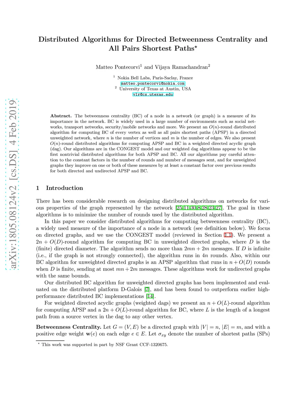 Distributed Algorithms for Directed Betweenness Centrality and All Pairs