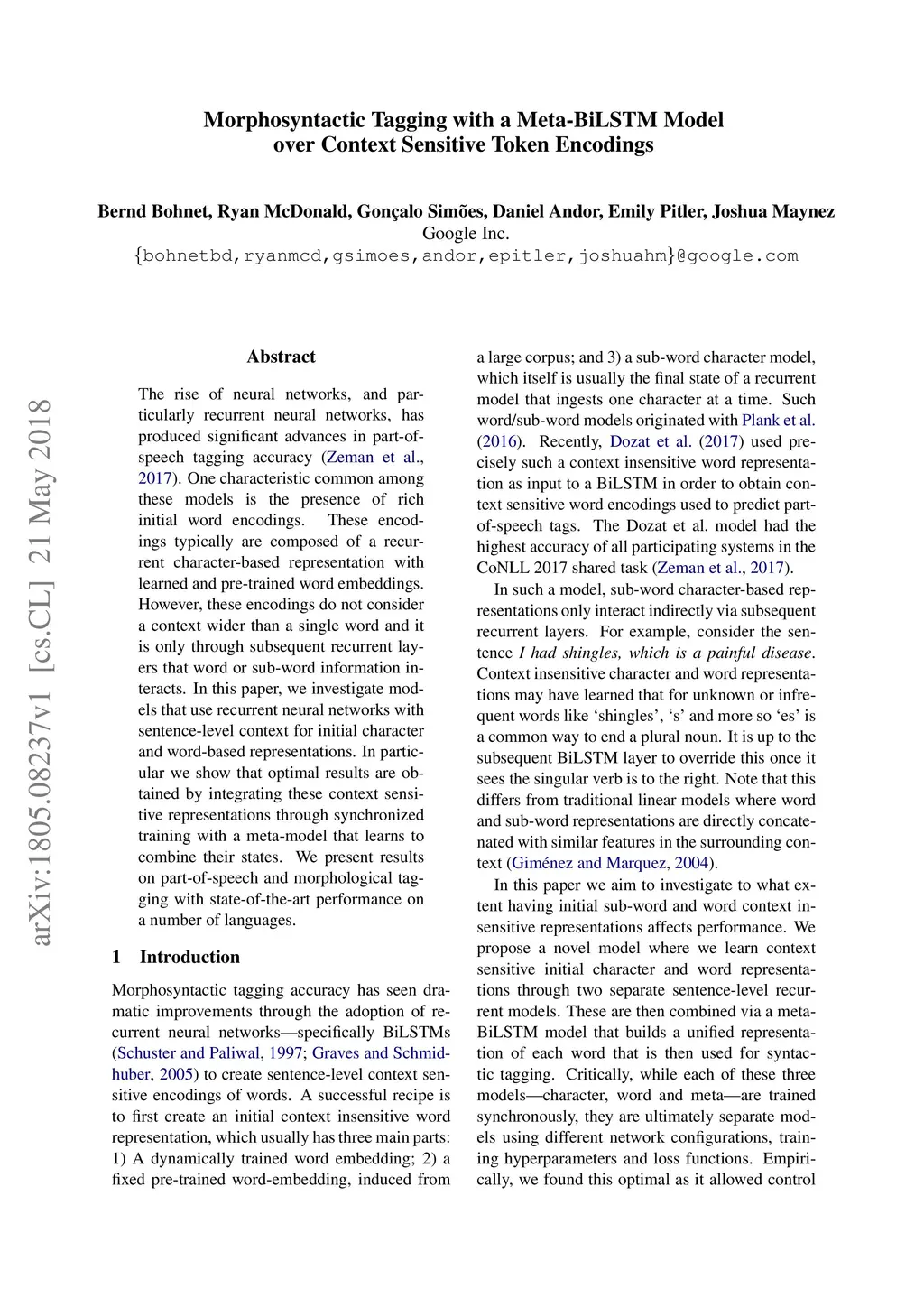 Morphosyntactic Tagging with a Meta-BiLSTM Model over Context Sensitive