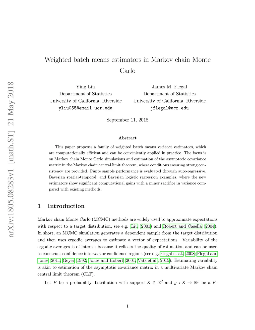 This paper proposes a family of weighted batch means variance estimators, which are computationally efficient and can be conveniently applied in practice. The focus is on Markov chain Monte Carlo simulations and estimation of the asymptotic covariance matrix in the Markov chain central limit theorem, where conditions ensuring strong consistency are provided. Finite sample performance is evaluated through auto-regressive, Bayesian spatial-temporal, and Bayesian logistic regression examples, where the new estimators show significant computational gains with a minor sacrifice in variance compared with existing methods.