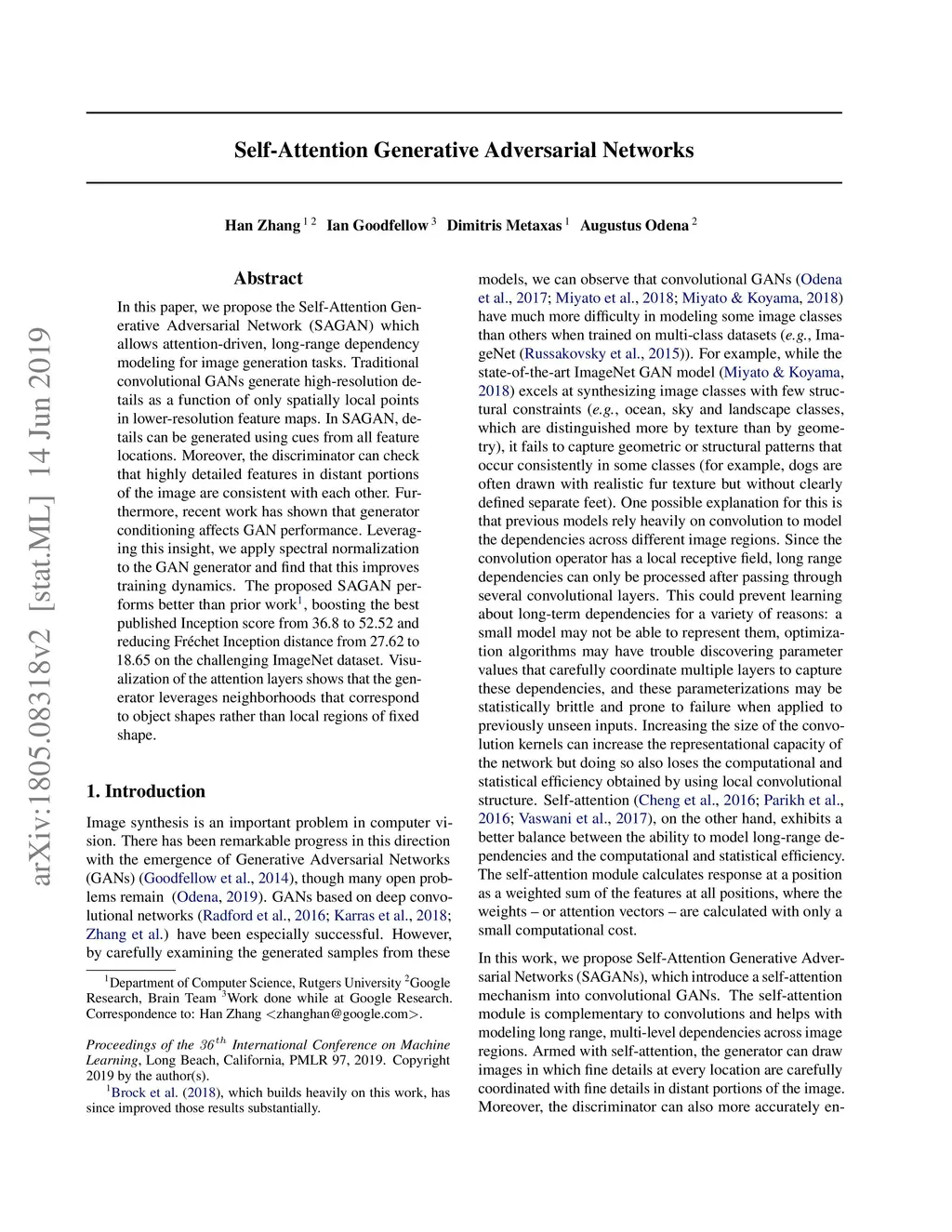 Self-Attention Generative Adversarial Networks