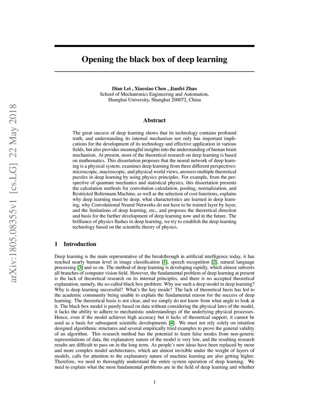 The great success of deep learning shows that its technology contains profound truth, and understanding its internal mechanism not only has important implications for the development of its technology and effective application in various fields, but also provides meaningful insights into the understanding of human brain mechanism. At present, most of the theoretical research on deep learning is based on mathematics. This dissertation proposes that the neural network of deep learning is a physical system, examines deep learning from three different perspectives: microscopic, macroscopic, and physical world views, answers multiple theoretical puzzles in deep learning by using physics principles. For example, from the perspective of quantum mechanics and statistical physics, this dissertation presents the calculation methods for convolution calculation, pooling, normalization, and Restricted Boltzmann Machine, as well as the selection of cost functions, explains why deep learning must be deep, what characteristics are learned in deep learning, why Convolutional Neural Networks do not have to be trained layer by layer, and the limitations of deep learning, etc., and proposes the theoretical direction and basis for the further development of deep learning now and in the future. The brilliance of physics flashes in deep learning, we try to establish the deep learning technology based on the scientific theory of physics.