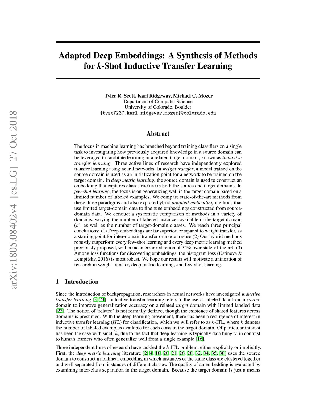Adapted Deep Embeddings: A Synthesis of Methods for -Shot Inductive