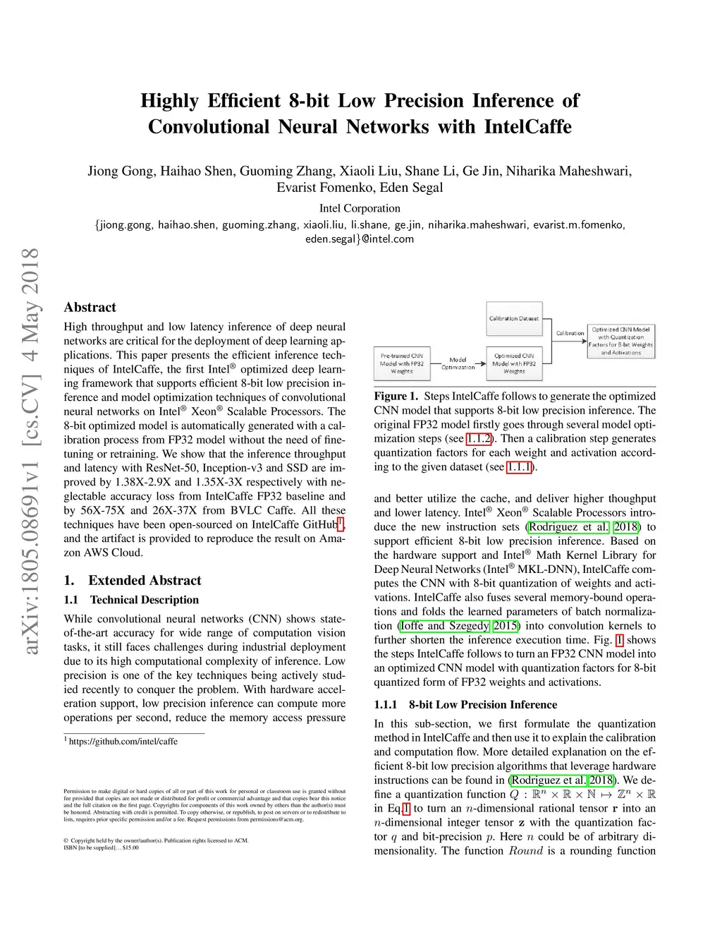 Highly Efficient 8-bit Low Precision Inference of Convolutional Neural
