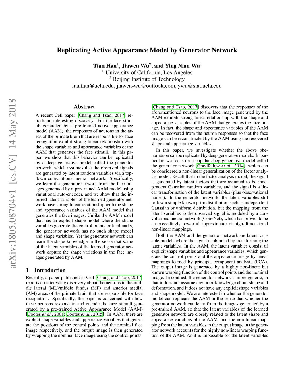 Replicating Active Appearance Model by Generator Network