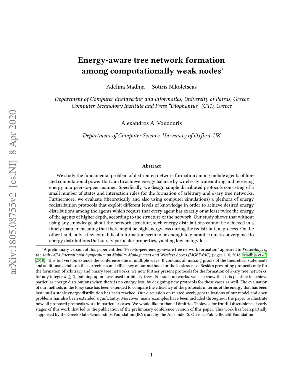 Energy-aware tree network formation among computationally weak nodes