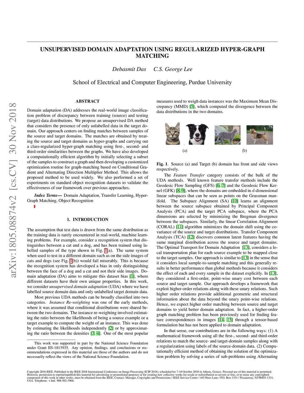 Unsupervised Domain Adaptation using Regularized Hyper-graph Matching