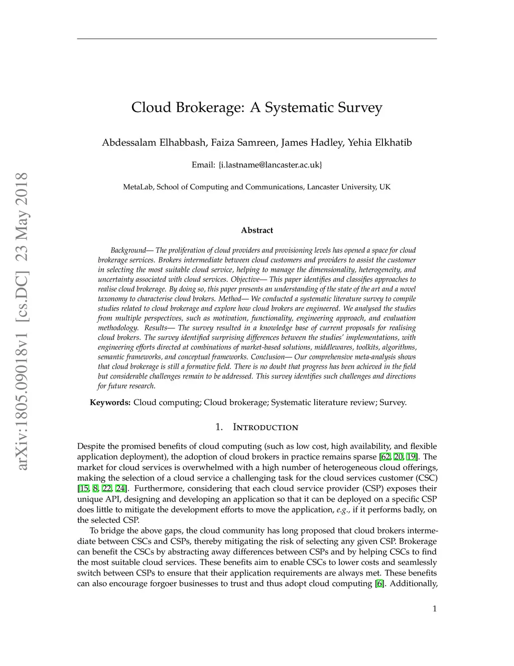 Background: The proliferation of cloud providers and provisioning levels has opened a space for cloud brokerage services. Brokers intermediate between cloud customers and providers to assist the customer in selecting the most suitable cloud service, helping to manage the dimensionality, heterogeneity, and uncertainty associated with cloud services. Objective: This paper identifies and classifies approaches to realise cloud brokerage. By doing so, this paper presents an understanding of the state of the art and a novel taxonomy to characterise cloud brokers. Method: We conducted a systematic literature survey to compile studies related to cloud brokerage and explore how cloud brokers are engineered. We analysed the studies from multiple perspectives, such as motivation, functionality, engineering approach, and evaluation methodology. Results: The survey resulted in a knowledge base of current proposals for realising cloud brokers. The survey identified surprising differences between the studies' implementations, with engineering efforts directed at combinations of market-based solutions, middlewares, toolkits, algorithms, semantic frameworks, and conceptual frameworks. Conclusion: Our comprehensive meta-analysis shows that cloud brokerage is still a formative field. There is no doubt that progress has been achieved in the field but considerable challenges remain to be addressed. This survey identifies such challenges and directions for future research.