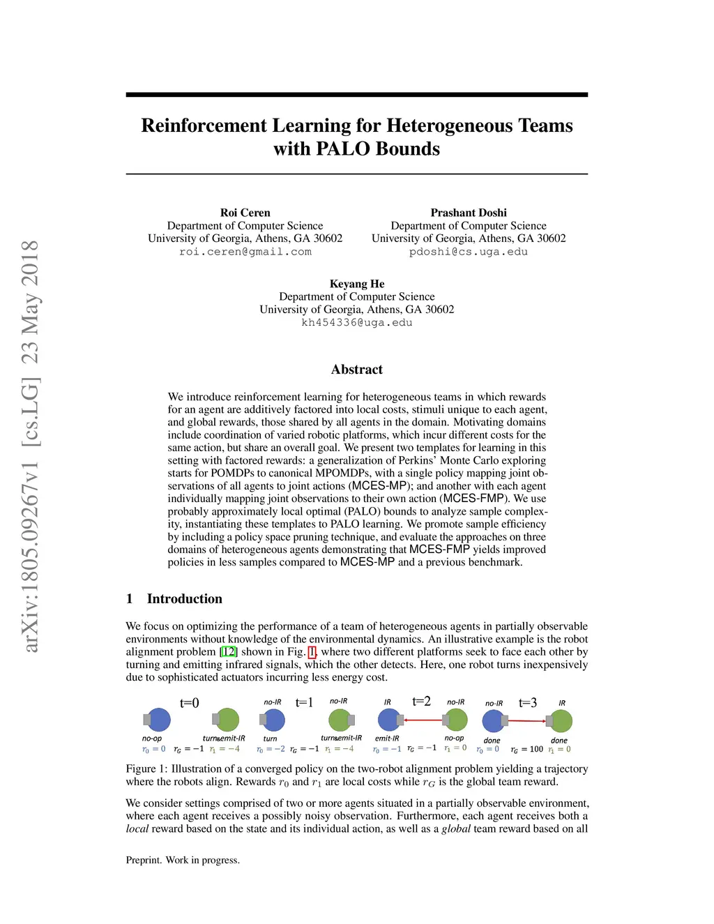 Reinforcement Learning for Heterogeneous Teams with PALO Bounds