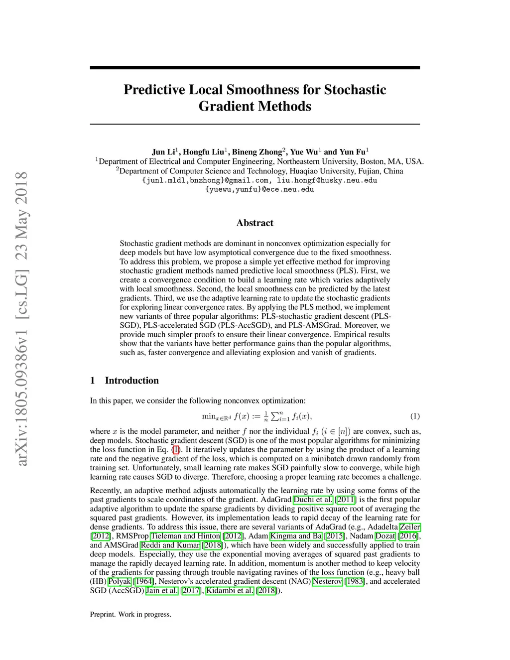 Stochastic gradient methods are dominant in nonconvex optimization especially for deep models but have low asymptotical convergence due to the fixed smoothness. To address this problem, we propose a simple yet effective method for improving stochastic gradient methods named predictive local smoothness (PLS). First, we create a convergence condition to build a learning rate which varies adaptively with local smoothness. Second, the local smoothness can be predicted by the latest gradients. Third, we use the adaptive learning rate to update the stochastic gradients for exploring linear convergence rates. By applying the PLS method, we implement new variants of three popular algorithms: PLS-stochastic gradient descent (PLS-SGD), PLS-accelerated SGD (PLS-AccSGD), and PLS-AMSGrad. Moreover, we provide much simpler proofs to ensure their linear convergence. Empirical results show that the variants have better performance gains than the popular algorithms, such as, faster convergence and alleviating explosion and vanish of gradients.
